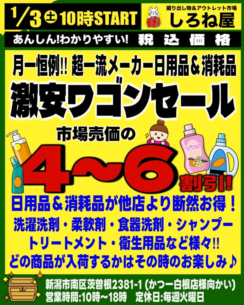 〒950-1456 新潟市南区茨曽根 2381-1 大型駐車場完備 営業時間:10:00〜19:00 定休日:年中無休(臨時休業あり)