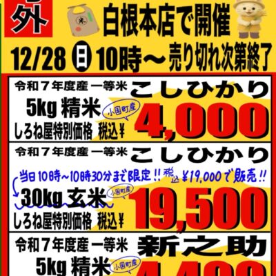 【お知らせ】一等米こしひかり・新之助即売会📢
